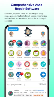 ارتقِ بإدارة أعمالك المالية والمحاسبية إلى مستوى جديد مع **ARI**، حيث يمكنك تسجيل كافة النفقات، وإنشاء أوامر شراء لقطع الغيار مع تحديث المخزون تلقائيًا، وتتبع جميع إيراداتك بوضوح تام. ولتبسيط سير العمل، تُمكّنك **ARI** من إدارة بطاقات العمل (JobCards) بكفاءة، وتعيين المهام، وتتبع أوقات العمل، والموافقة على الخدمات أو رفضها. كما يوفر لك التطبيق قدرة فائقة على إنشاء تقديرات وعروض أسعار احترافية وفواتير قابلة للتخصيص بالكامل، مع دعم للتوقيع الإلكتروني، وإضافة شعار عملك، وخيارات طباعة محمولة متعددة، ودعم لعدة قيم ضريبية وخيارات دفع متنوعة. عزز ولاء عملائك من خلال تذكيرات الخدمة التلقائية وتقارير فحص المركبات الشاملة، واسمح لهم بحجز خدماتهم عبر الإنترنت مباشرةً في تقويم **ARI**. ومع التقارير الشاملة التي تغطي الجوانب المالية والتشغيلية، ستبقى دائمًا على اطلاع كامل. يدعم **ARI** لغات متعددة ويقدم دعمًا للعملاء على مدار الساعة، لضمان استمرارية عملك بسلاسة ويسر.