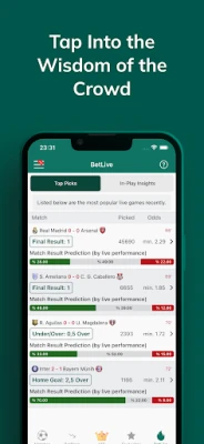لا تفوت أي لحظة من الإثارة الكروية مع BetAnalysis. ابقَ على اطلاع دائم بآخر المستجدات من خلال النتائج المباشرة للمباريات الجارية. قم بإنشاء قائمة مخصصة لمبارياتك المفضلة لتتتبع فقط ما يهمك، وتجنب الفوضى. ولتبقى في قلب الحدث، فعّل الإشعارات لتتلقى تحديثات فورية حول اللحظات الحاسمة: صافرة البداية، الأهداف، البطاقات الحمراء، وغيرها الكثير، كل ذلك مباشرة إلى جهازك. BetAnalysis هو دليلك المتكامل للاستمتاع بكرة القدم بذكاء وثقة.