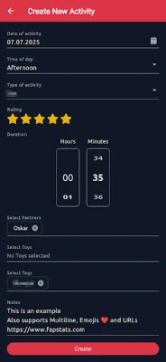 يُعد Fapstats مذكرتك الشخصية الشاملة، حيث يمكنك توثيق كل تفاصيل اللحظات الحميمة بدقة، من التاريخ والوقت والنوع والتقييم والمدة، وصولاً إلى الملاحظات والشركاء والأدوات والعلامات والمواقع. كل إدخال يساهم في رسم صورة متكاملة لإحصائياتك الشخصية، مما يمكّنك من تحليل التكرار والمدة ومستويات الرضا على مدار الأيام والأسابيع والأشهر. وللأزواج، يقدم Fapstats ميزة مزامنة الحسابات لتقويم مشترك يُحدّث في الوقت الفعلي، لضمان مشاركة سلسة وتجربة متناغمة دون الحاجة لتسجيل الأنشطة مرتين، مع الحفاظ على خصوصية كل طرف.