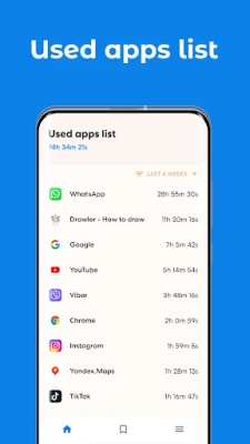 مع "Phone Statistic"، لن تبقى في حيرة بعد الآن. استكشف لوحة تحكم بديهية تسمح لك بوضع حدود يومية ذكية لتطبيقاتك، مما يساعدك على استعادة وقتك الثمين. احصل على تقارير مفصلة عن المدة التي تقضيها في كل تطبيق، مع إمكانية تصفية البيانات حسب اليوم، الأمس، الأسبوع، الأربعة أسابيع الماضية، أو حتى العام بأكمله. تعرف على التطبيقات الأكثر استخداماً لديك خلال الأسبوع وادخل في تفاصيل دقيقة حول كل منها، لتكتشف أنماط استخدامك بوضوح غير مسبوق.